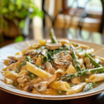 Creamy Mushroom and Asparagus Chicken Penne is a comforting, flavorful dish that combines tender chicken, vibrant asparagus, and earthy mushrooms in a rich sauce. This quick and satisfying recipe is perfect for weeknight dinners or special occasions, ensuring everyone at the table will be asking for seconds. With its delightful aroma and creamy texture, it’s a meal that promises to warm your heart and soul.