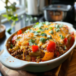 Indulge in a heartwarming dish of Stuffed Pepper Casserole Beef, where savory ground beef meets colorful bell peppers and aromatic spices. This easy-to-make casserole not only brightens your dinner table but also fills your home with irresistible aromas. Perfect for family dinners or gatherings, it’s a delightful blend of flavors that will surely become a favorite. Gather your loved ones around and enjoy every satisfying bite!