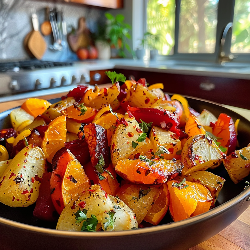Elevate your meal with this vibrant Zesty Tangerine and Sumac Roasted Vegetables recipe. Featuring a colorful mix of fresh vegetables, sweet tangerines, and tangy sumac, this dish is a flavor-packed delight that’s as visually stunning as it is delicious. Perfect for weeknight dinners or special occasions, these roasted veggies are sure to impress your family and friends!